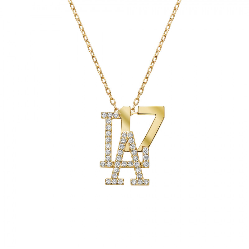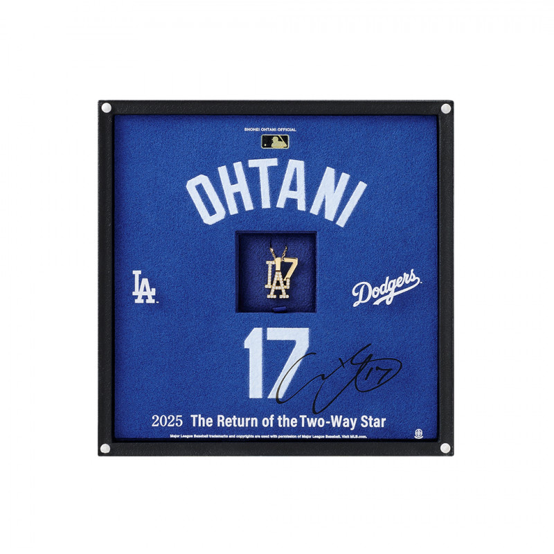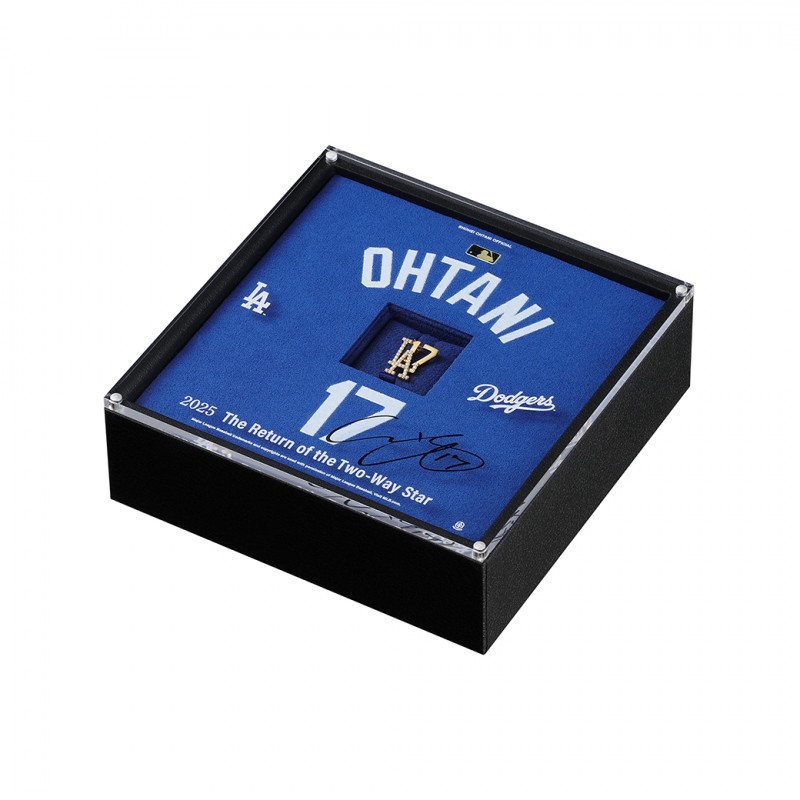 ダイヤモンドで象った「LA」のメインロゴの背景に、大谷選手の代名詞である背番号「17」を重ねた、打者・投手としての二刀流復活を象徴するデザイン。専用ケースには、ゴールドMLB ロゴがプリントされています。