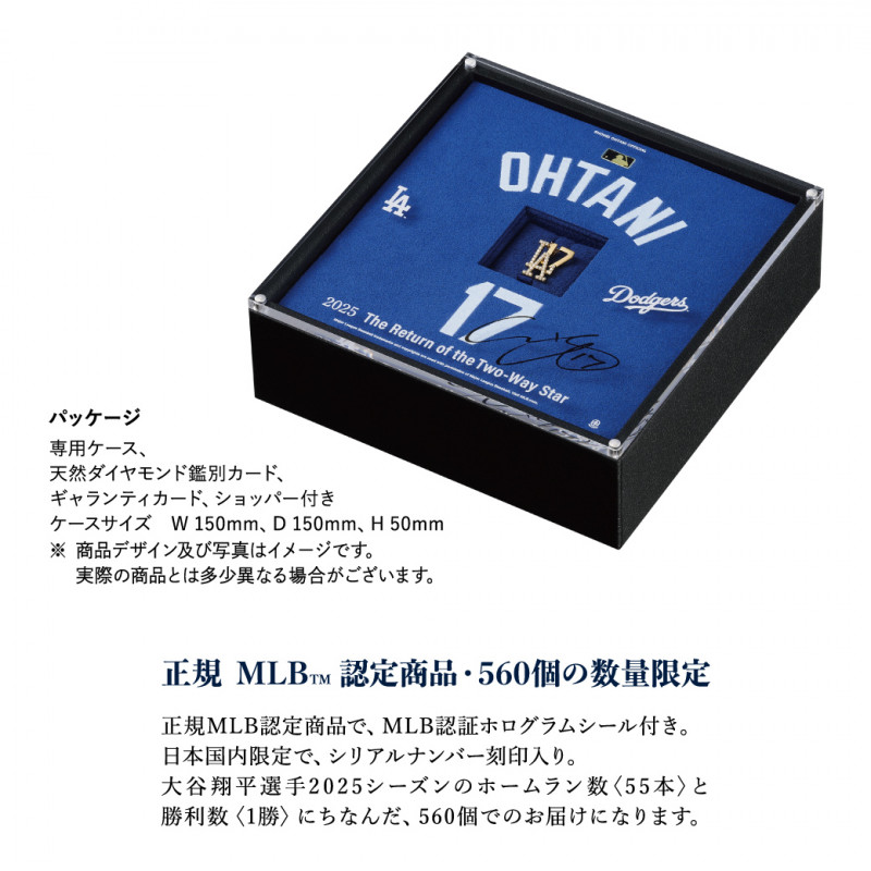限定数 560個は、大谷翔平選手 2025シーズンのホームラン数<55本>と勝利数<1勝>にちなんでおり、すべてシリアルナンバー入りでお届けします。