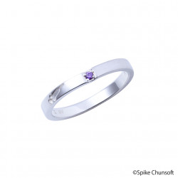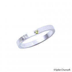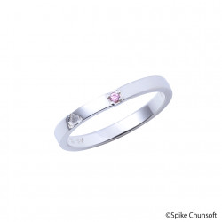 学級裁判をモチーフにしたダブルリング風のトップに出身校の校章アイコンを取り込み、イメージカラーストーンをセットしました。
