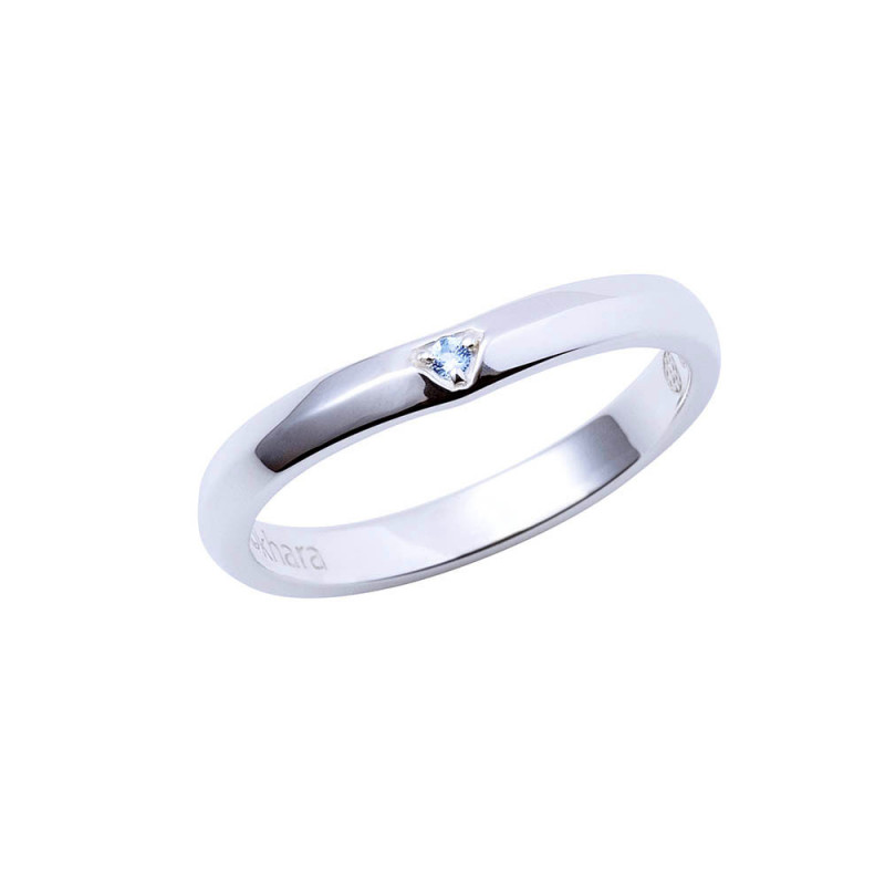 制服の首元をイメージしたV字フォルムのリングに、NERVの制服左胸にあるバッジを中央に取り込み、ワイシャツカラーのストーンをセット。