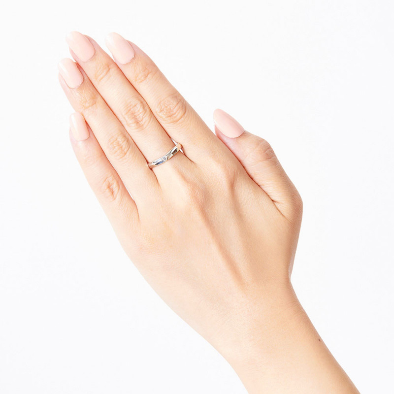 加持とミサトのリングはV字のラインが重なる仕様となっており、二人が寄り添っていてほしいという願いを込めデザインしました。