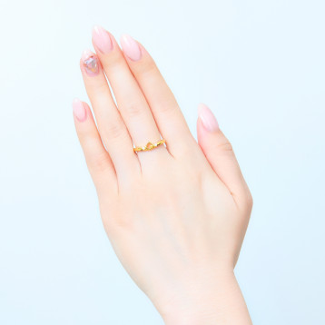 すっきりとしたV字フォルムに、キイロイトリのシルエットとイメージカラーのストーンをセットしました。ふんわり優しい世界観と遊び心をぎゅっと閉じ込めた、大人可愛いデザインです。