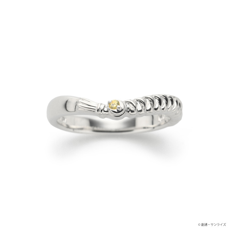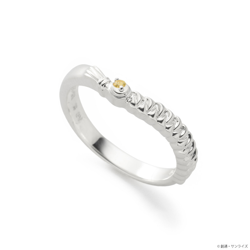『機動戦士ガンダム 鉄血のオルフェンズ』10周年をお祝いしたシルバーリングです。三日月・オーガスモデルは、ブレスレットをモチーフに取り込んだV字デザイン。中央の三日月マークには、イメージカラーのストーンをセットし、内側には名前と鉄華団のマークの刻印を施しました。