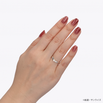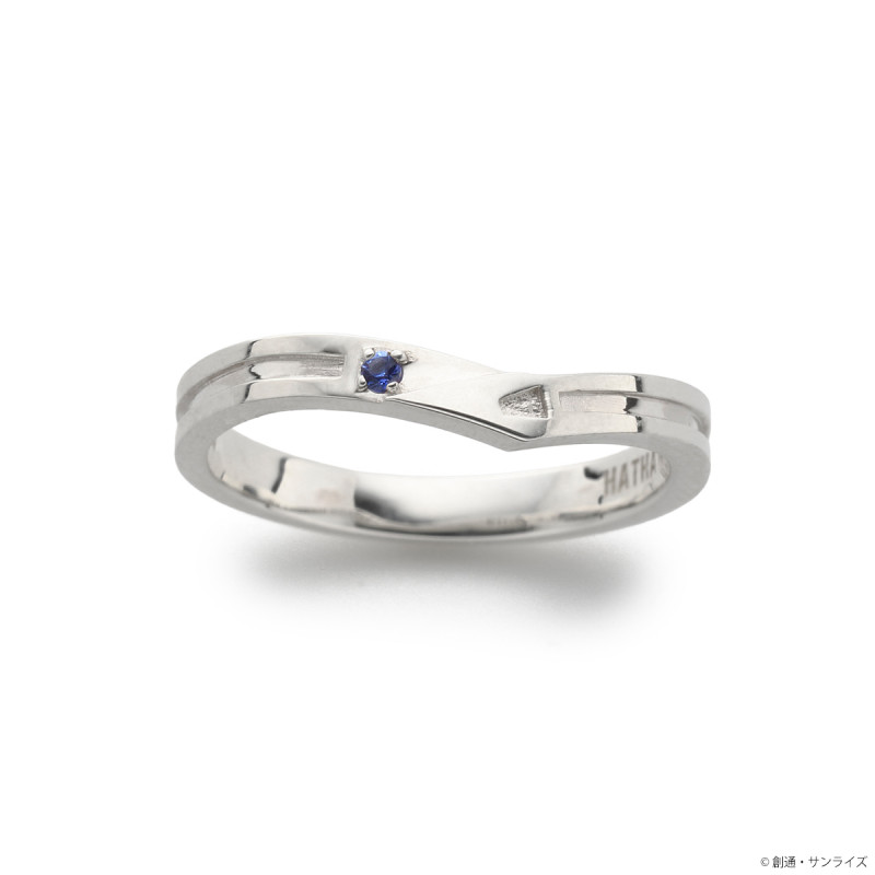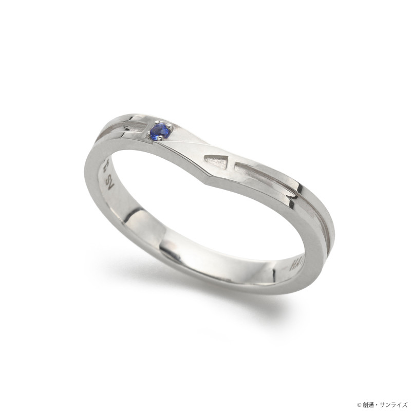 パイロットスーツをモチーフに取り込んだV字デザインに、イメージカラーストーンをセット。内側にはΞ(クスィー)ガンダムマークと名前の刻印を施しました。